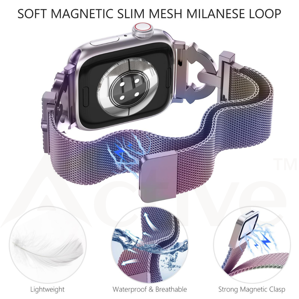 Crafted from premium, skin-safe materials built for comfort and durability, Yviora Active™ bands deliver the perfect balance of resilience, flexibility, and refined style. From breathable sport loops to sleek mesh and high-gloss statement designs, every piece is made for those who live dynamically.
